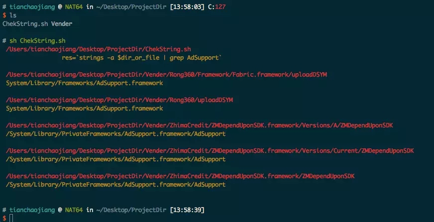 // 检查每一个文件是否包含 `AdSupport`