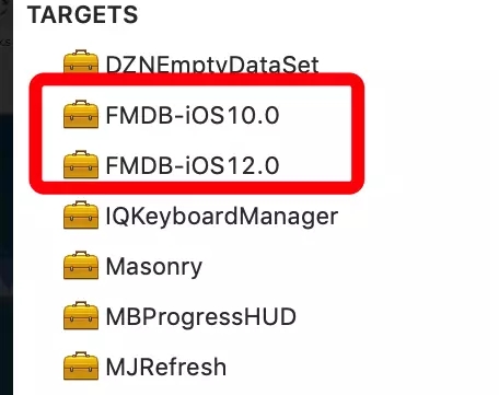 如图, pod install 之后出现出现 2 个 FMDB 的 framework.